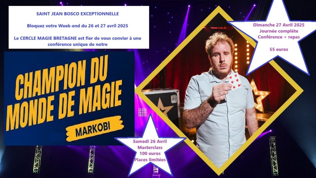 Notre champion du monde de magie hexagonal : MARKOBI est en Bretagne les 26 et 27 avril 2025 avec le Cercle Magie de Bretagne.